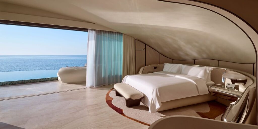 Χάθηκαν τα μαγευτικά resorts ανά την Ελλάδα, κι εγώ μιλάω για διακοπές στη Σαουδική Αραβία; Εύλογη η απορία. Όμως, μόλις είδα αυτές τις εικόνες με συνεπήραν. Γιατί απλούστατα, δεν νομίζω ότι έχω ξαναδεί κάτι παρόμοιο. Διόλου τυχαία ψηφίστηκε ως ένα από τα ωραιότερα μέρη του κόσμου για το 2025 από το περιοδικό Time. Το Shebara Resort είναι αναμφισβήτητα ένα από τα πιο εντυπωσιακά παραθαλάσσια θέρετρα στον κόσμο. Σε συναρπάζει όχι απλώς επειδή είναι τόσο καλαίσθητο, αλλά γιατί έχει πετύχει να συνδυάσει την καλαισθησία με τις τεχνολογίες αιχμής, την οικολογική συνείδηση και έναν αρχιτεκτονικό σχεδιασμό που κυριολεκτικά σου κόβει την ανάσα. Το τοπίο; Μία ακανόνιστη λωρίδα γης με αμμοθίνες, φυτά που συναντάς στην έρημο, σημεία που οι θαλάσσιες χελώνες εναποθέτουν τα αυγά τους και παρθένους κοραλλιογενείς υφάλους.