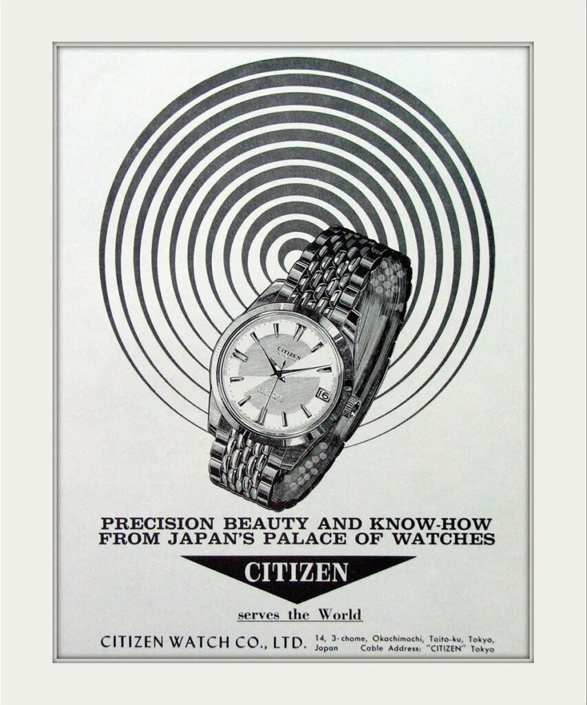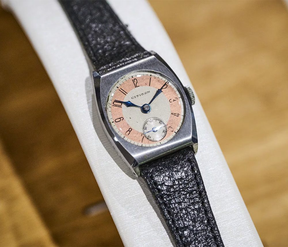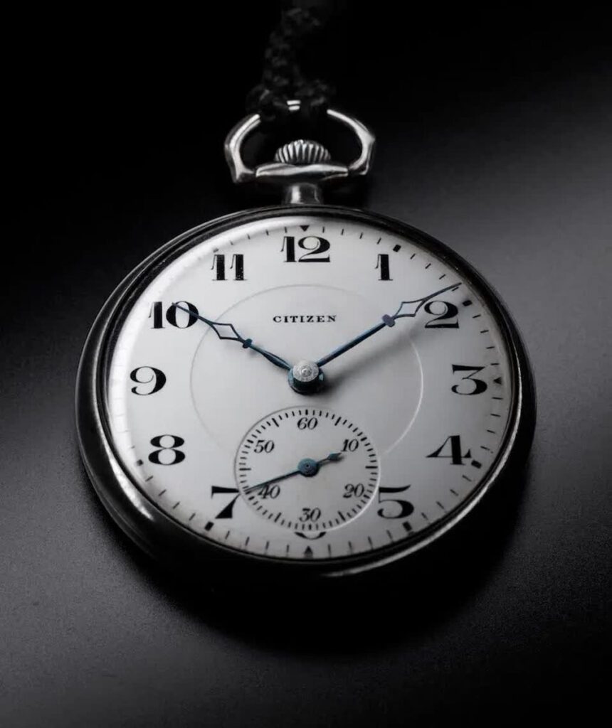 Το πρώτο ρολόι της Citizen ήταν ένα κουρδιστό μοντέλο τσέπης με λευκό καντράν και μεγάλους αραβικούς αριθμούς, ενώ, αντί για αλυσίδα, ήταν δεμένο με ένα πλεκτό χοντρό κορδόνι.
